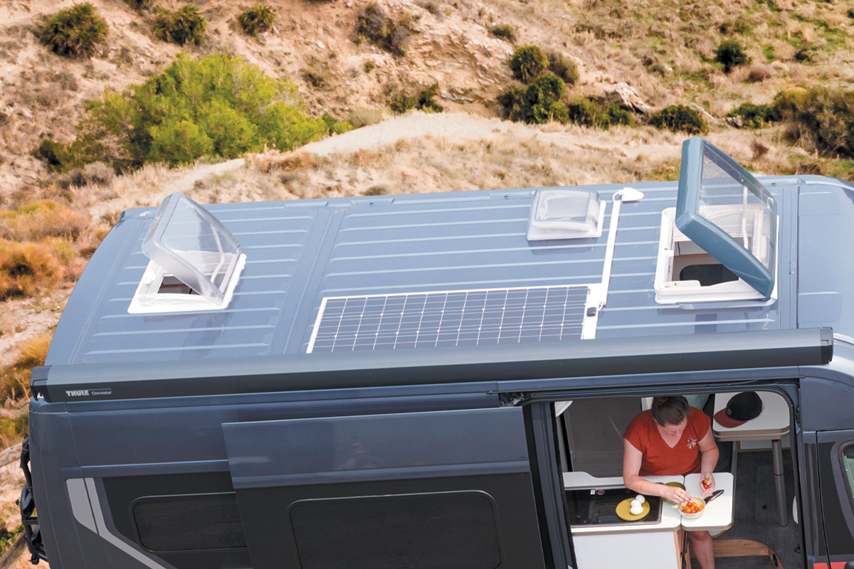 Le toit relevable, très pratique pour un couchage principal ou supplémentaire. Il réhausse le véhicule 2,72 m. Attention cette option est incompatible avec le lanterneau.