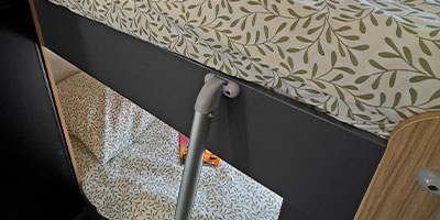 Store banne, caillebotis en douche, marche-pied électrique de 700mm, tapis dans la soute